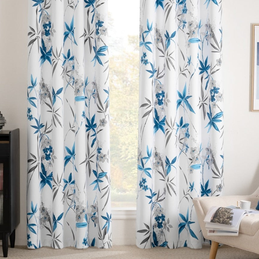 Transforma cualquier espacio con nuestra encantadora cortina, diseñada para añadir un toque de frescura y serenidad a tu hogar. Con su vibrante estampado de bambú floral en tonos azules y grises sobre un fondo blanco puro, esta cortina no es solo un elemento decorativo, sino una invitación a la calma y la naturaleza. Imagina tu sala, dormitorio o incluso tu baño cobrando vida con este diseño único que evoca jardines botánicos y la tranquilidad de paisajes exóticos. Es la elección perfecta para quienes buscan combinar estilo, funcionalidad y un ambiente relajante.
