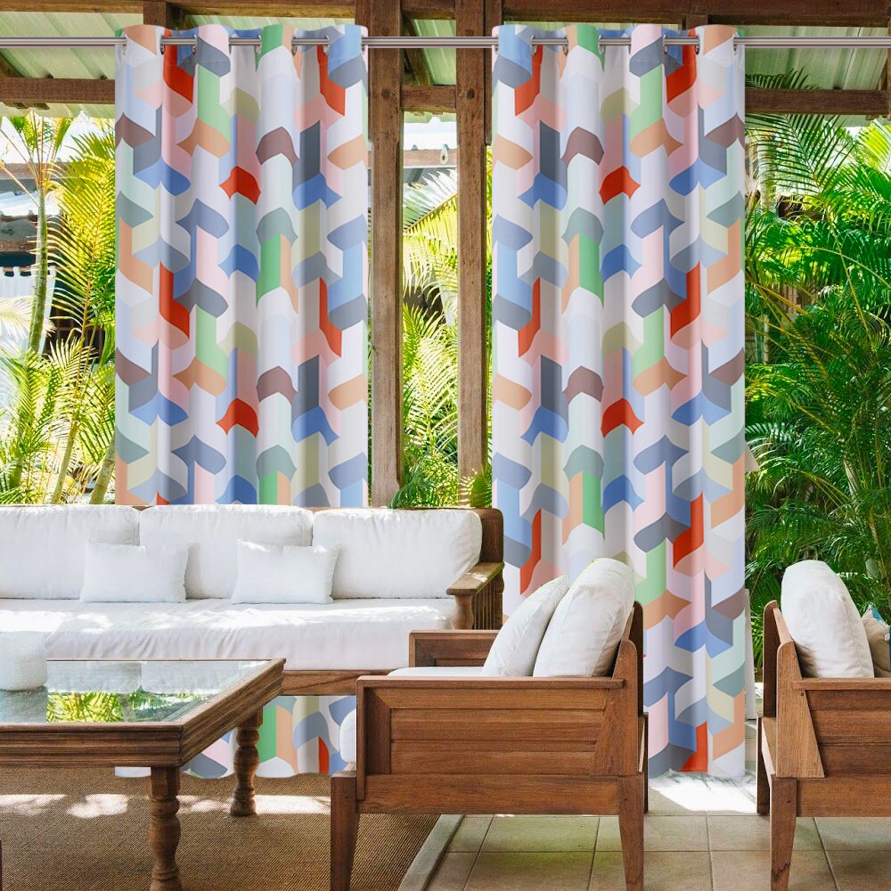 Cortina de Exterior con Estampado Geométrico: Dale Vida a tu Espacio Exterior