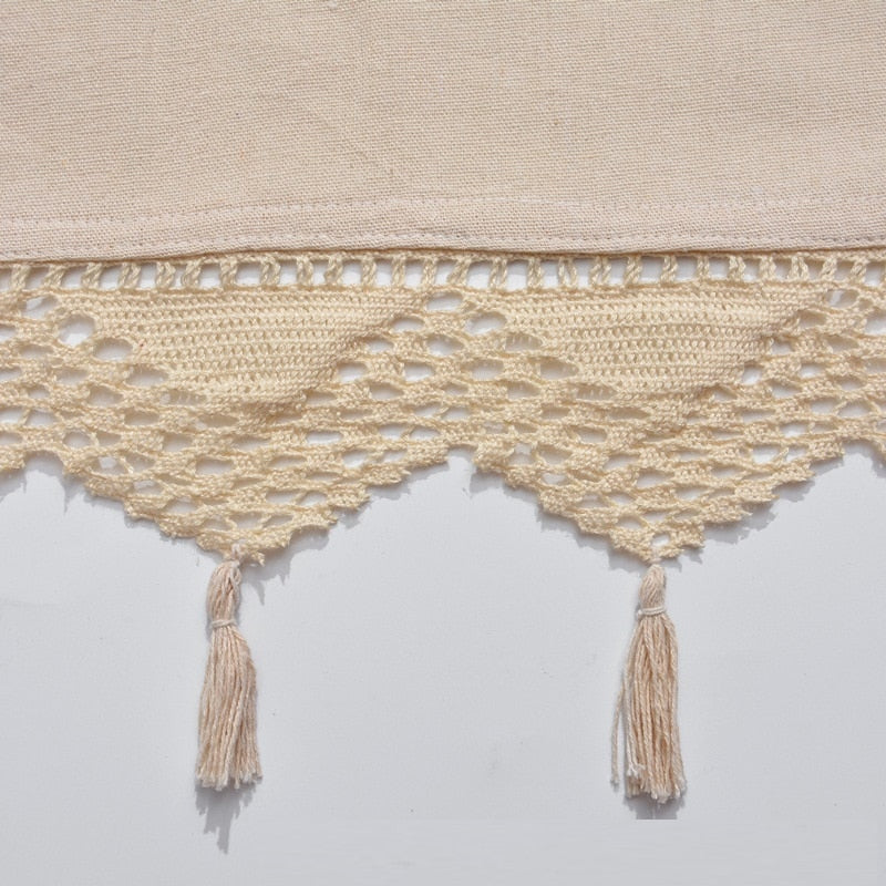 Cada una de nuestras Cortinas Estilo Boho con Macramé es un tributo a la artesanía y al diseño consciente. La base de tela color crema proporciona una sensación de ligereza y frescura, mientras que los adornos de macramé en la parte inferior, con sus flecos y nudos, añaden una textura rica y un movimiento sutil. Los patrones calados en el cuerpo de la cortina, que evocan formas florales y geométricas, permiten un juego de luces que enriquece el ambiente sin sacrificar la privacidad. Esta cortina está pensada para ser más que un simple accesorio; es una pieza central que realza la atmósfera bohemia, invitando a la relajación y a la conexión con lo natural. Su versatilidad la hace ideal para combinar con diferentes estilos decorativos, desde el más rústico hasta el más moderno con un toque chic.