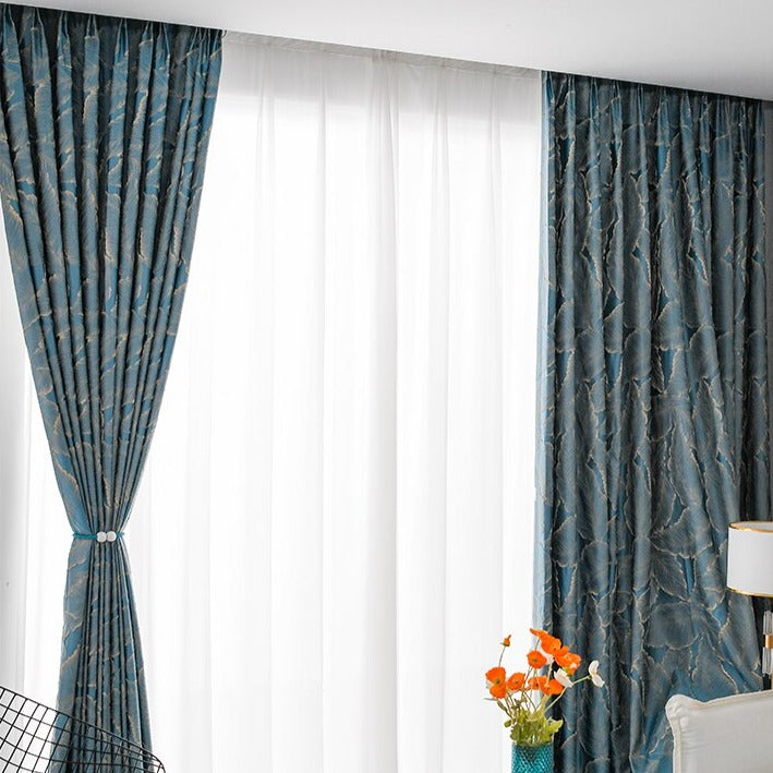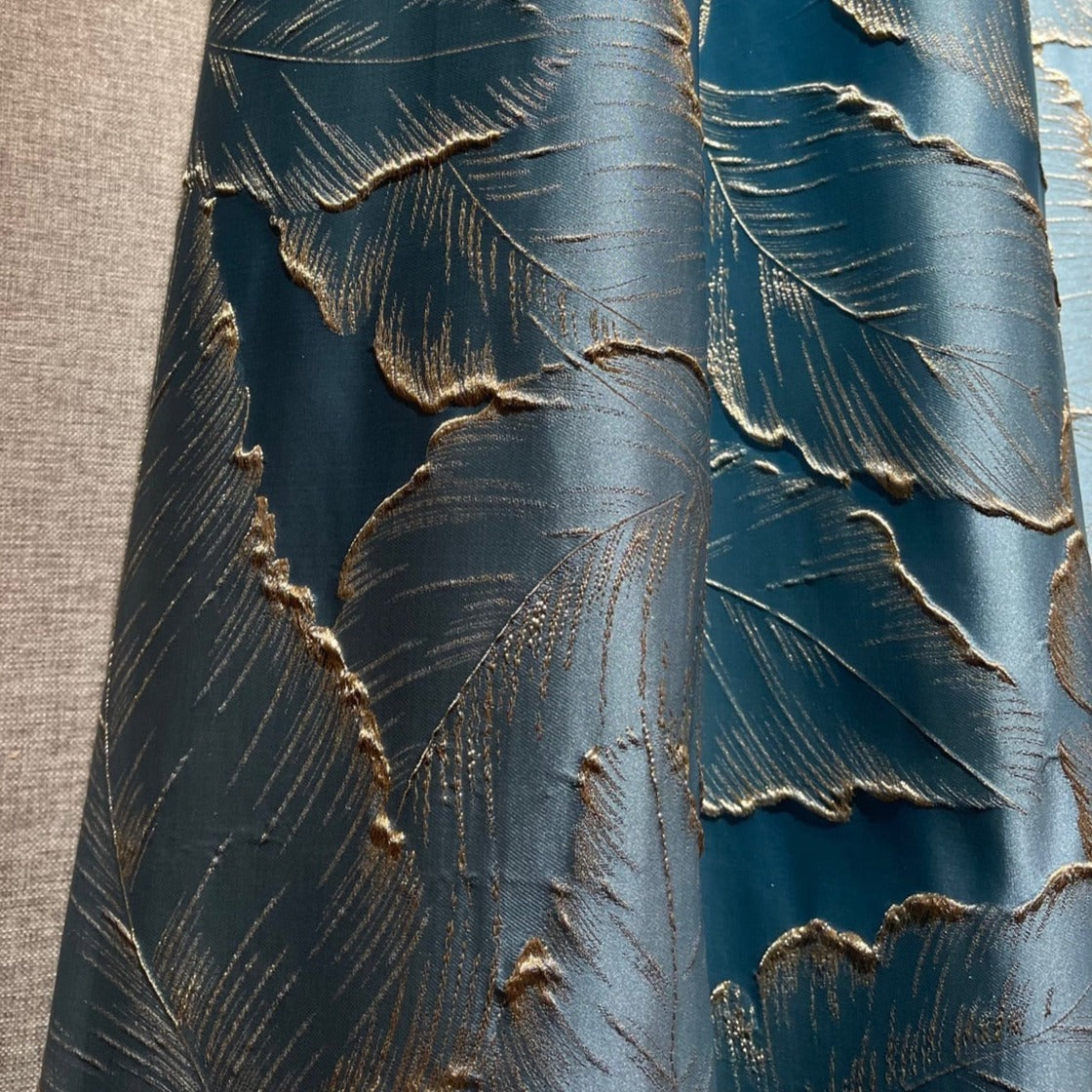 Imagina tu hogar con esta magnífica cortina jacquard opaca con relieve dorado. Su diseño, inspirado en la delicadeza de las hojas, aporta un toque de naturaleza y sofisticación. El tono azul verdoso profundo de la tela, junto con el relieve dorado sutil pero impactante, crea un juego de luces y sombras que capta la mirada. No es solo una cortina, es una pieza de arte textil que eleva la estética de cualquier habitación, ofreciendo no solo belleza, sino también una funcionalidad excepcional.