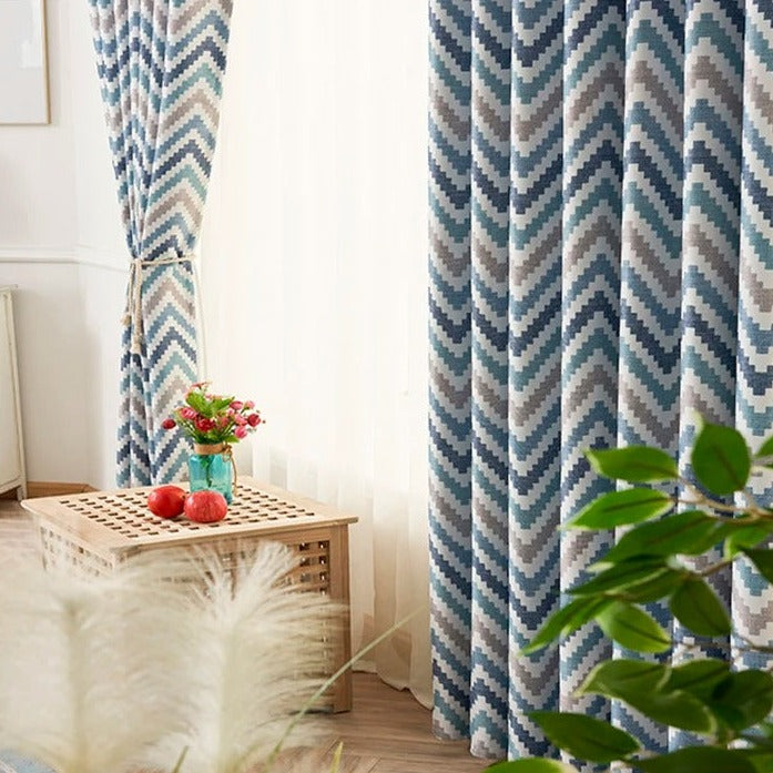 Cortina Opaca con Estampado Chevron Azul: Tu Toque de Estilo y Privacidad