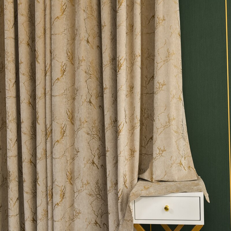 Características clave de tu nueva Cortina Opaca con Estampado Mármol Dorado