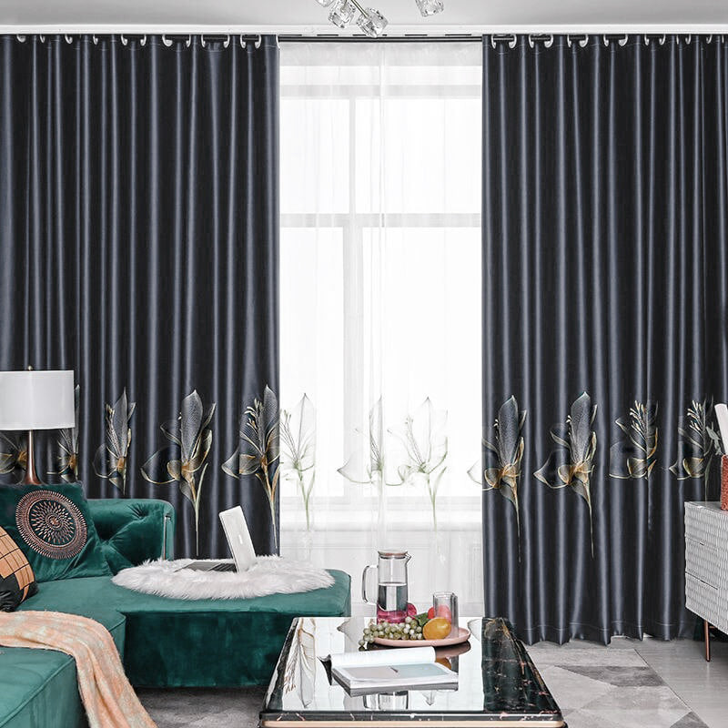 Dale un toque de distinción a tu hogar con la Cortina opaca gris con estampado floral.