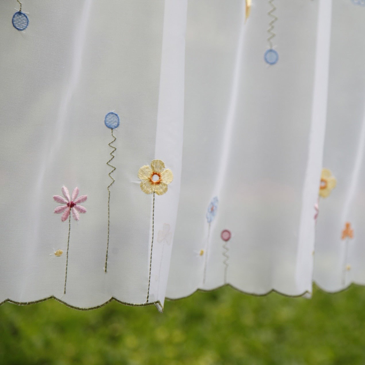 Deja que la belleza de la naturaleza entre en tu hogar con nuestro juego de visillos para cocina bordados. Cada pequeña flor, con sus colores vibrantes pero sutiles, ha sido cuidadosamente bordada para crear un ambiente acogedor y lleno de vida. Son perfectos para la cocina, pero también lucirían preciosos en un comedor de diario o en cualquier ventana donde desees un toque de encanto rústico-chic. Su tela ligera ondea suavemente con la brisa, creando una atmósfera relajante y llena de encamia. Además, su diseño versátil combina a la perfección con una gran variedad de estilos decorativos, desde el más moderno hasta el más tradicional.