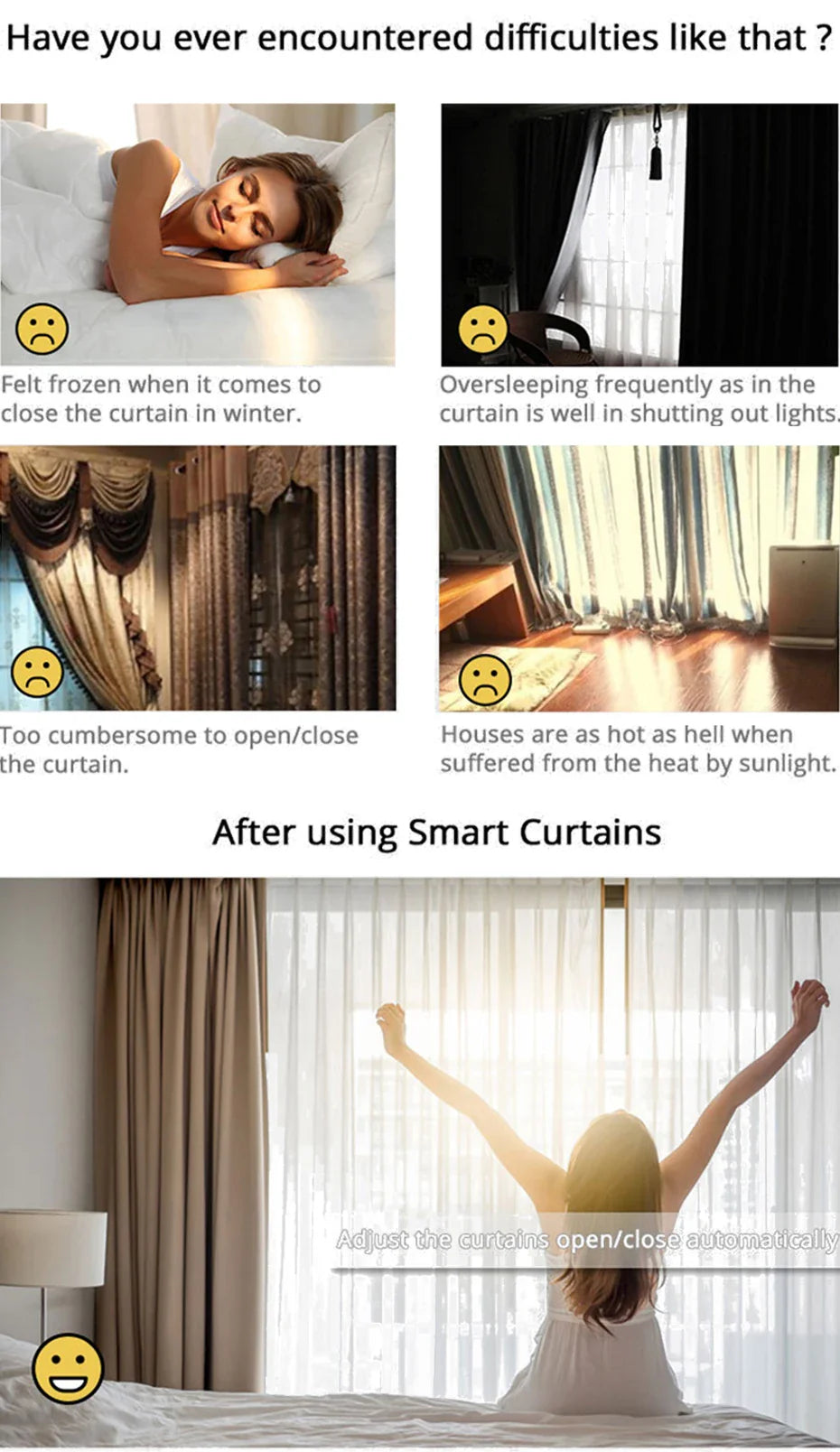 Este riel para cortina eléctrico inteligente no es solo un dispositivo, es una solución que simplifica tu día a día y eleva el nivel de confort en tu hogar. Despiértate con la luz natural del sol entrando suavemente por tu ventana, o crea el ambiente perfecto para una noche de cine con solo un comando de voz. Tu hogar nunca ha sido tan inteligente y tan fácil de gestionar.