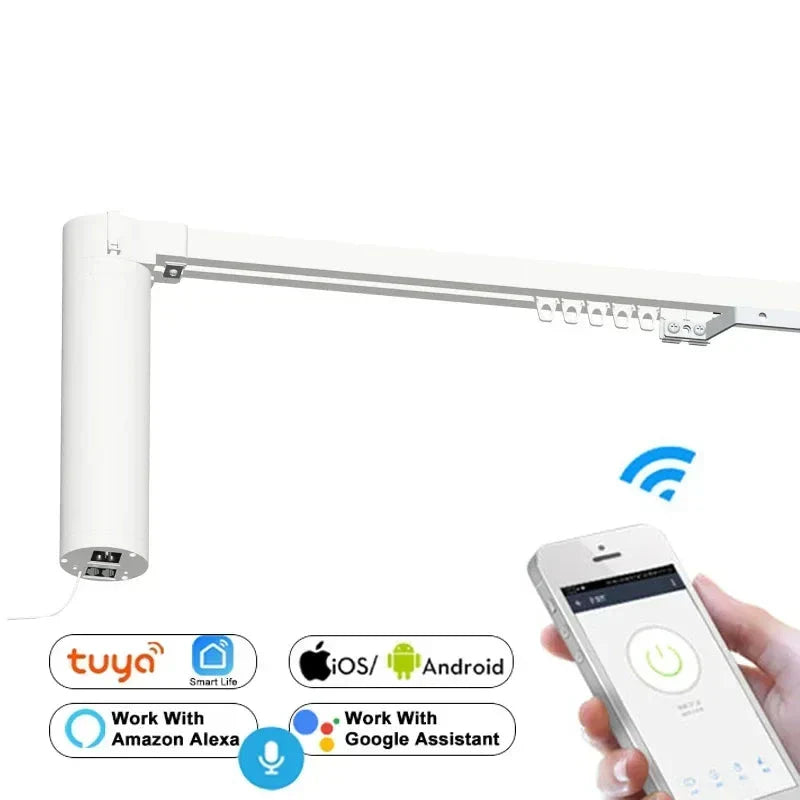Este sistema inteligente es compatible con las plataformas domóticas más populares, como Tuya Smart Life, Amazon Alexa y Google Assistant. Esto significa que puedes integrarlo fácilmente en tu ecosistema de hogar inteligente existente. Ya sea que prefieras usar tu teléfono iOS o Android, o simplemente dar una instrucción a tu asistente de voz, el control de tu riel para cortina eléctrico inteligente será intuitivo y rápido. Programa horarios para que tus cortinas se abran al amanecer o se cierren al atardecer, o ajústalas según tus necesidades del momento. Tu hogar se adaptará a ti, no al revés.