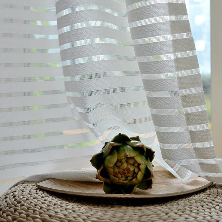 Un Visillo Blanco Translúcido con Rayas Horizontales para un Hogar con Encanto