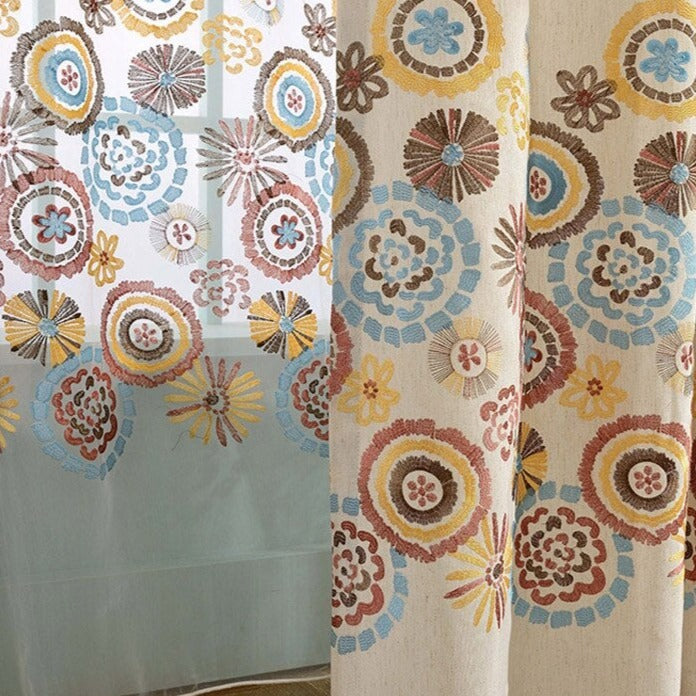 Transforma tus Ventanas con este Visillo Bordado con Mandalas de Colores