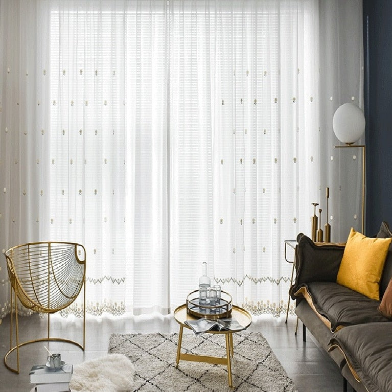 Un visillo con pequeñas flores bordadas que transformará tu espacio en un refugio de calma y belleza.