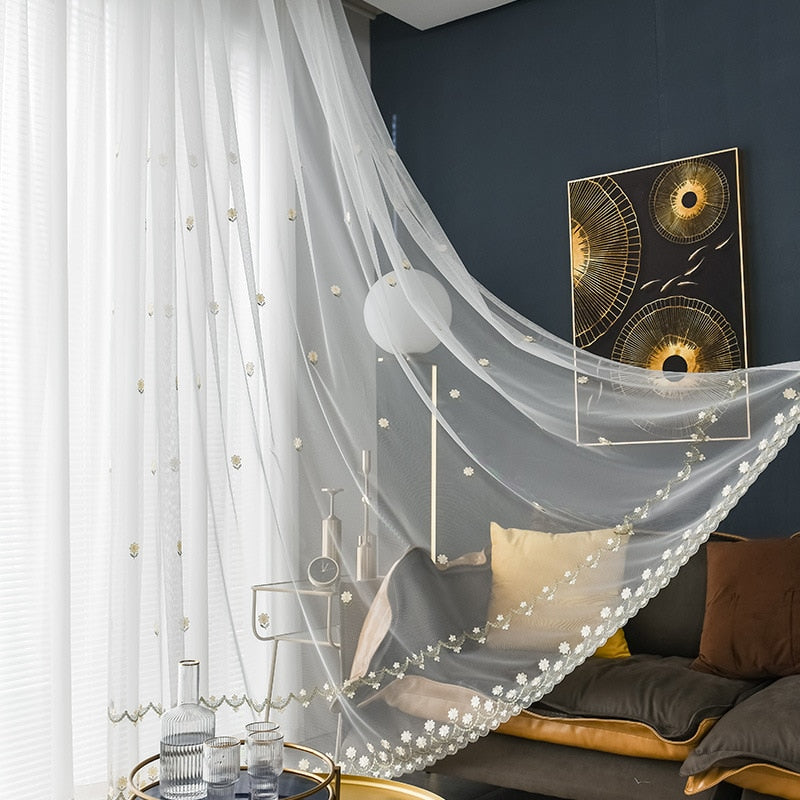 Disfruta de la Belleza y Versatilidad del Visillo con Pequeñas Flores Bordadas