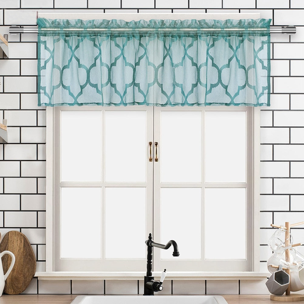 Dale un toque de frescura y estilo a tu cocina con nuestro exclusivo visillo de cocina corto tipo galería. Diseñado para realzar la belleza de tus ventanas sin sacrificar la entrada de luz natural, este visillo es la elección perfecta para quienes buscan funcionalidad y un diseño atractivo. Su patrón geométrico en tonos aguamarina añade un aire moderno y sofisticado, combinando a la perfección con una gran variedad de estilos decorativos, desde el contemporáneo hasta el rústico chic. Imagina tu cocina bañada en una luz suave y difusa, creando un ambiente acogedor y lleno de vida donde cada momento se siente especial.