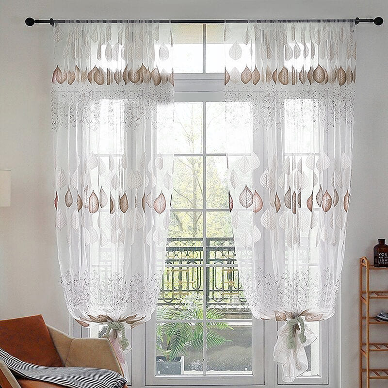 Transforma cualquier habitación de tu hogar con nuestro hermoso visillo translúcido, diseñado para añadir un toque de frescura y calidez. Las delicadas hojas en tonos café claro y oscuro crean un patrón natural y relajante, perfecto para complementar una decoración acogedora. Este visillo no solo embellece tu ventana, sino que también filtra suavemente la luz, creando un ambiente luminoso y privado sin oscurecer tu espacio. ¡Imagina la tranquilidad que sentirás al ver los rayos del sol jugar con el diseño de hojas en tu sala de estar o dormitorio!